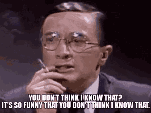 Who is the guy with the glasses smoking a cigarette saying, ”You think I don’t know that?” Are you trying to tell us something, Gotch?